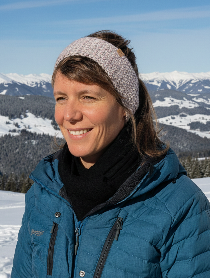 Bandeau en laine mérinos de Chartreuse, tricoté à la main pour un confort exceptionnel.