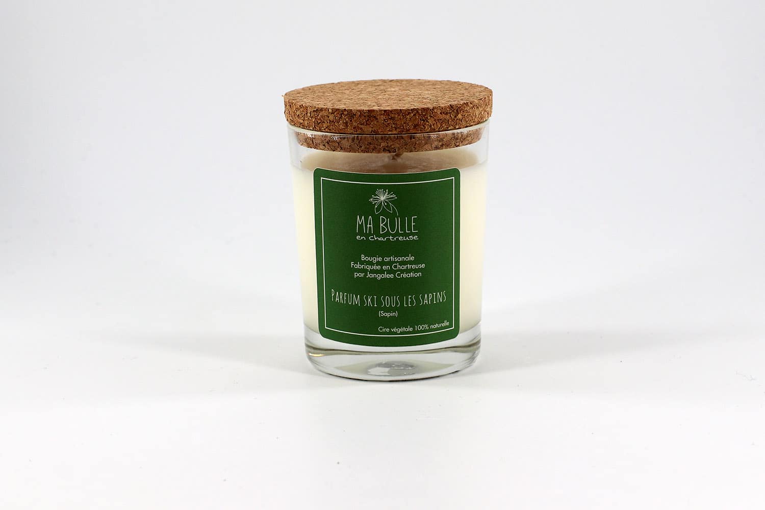 Plongez dans l’atmosphère fraîche et boisée de Chartreuse avec la bougie « Ski sous les sapins » d’Aline.