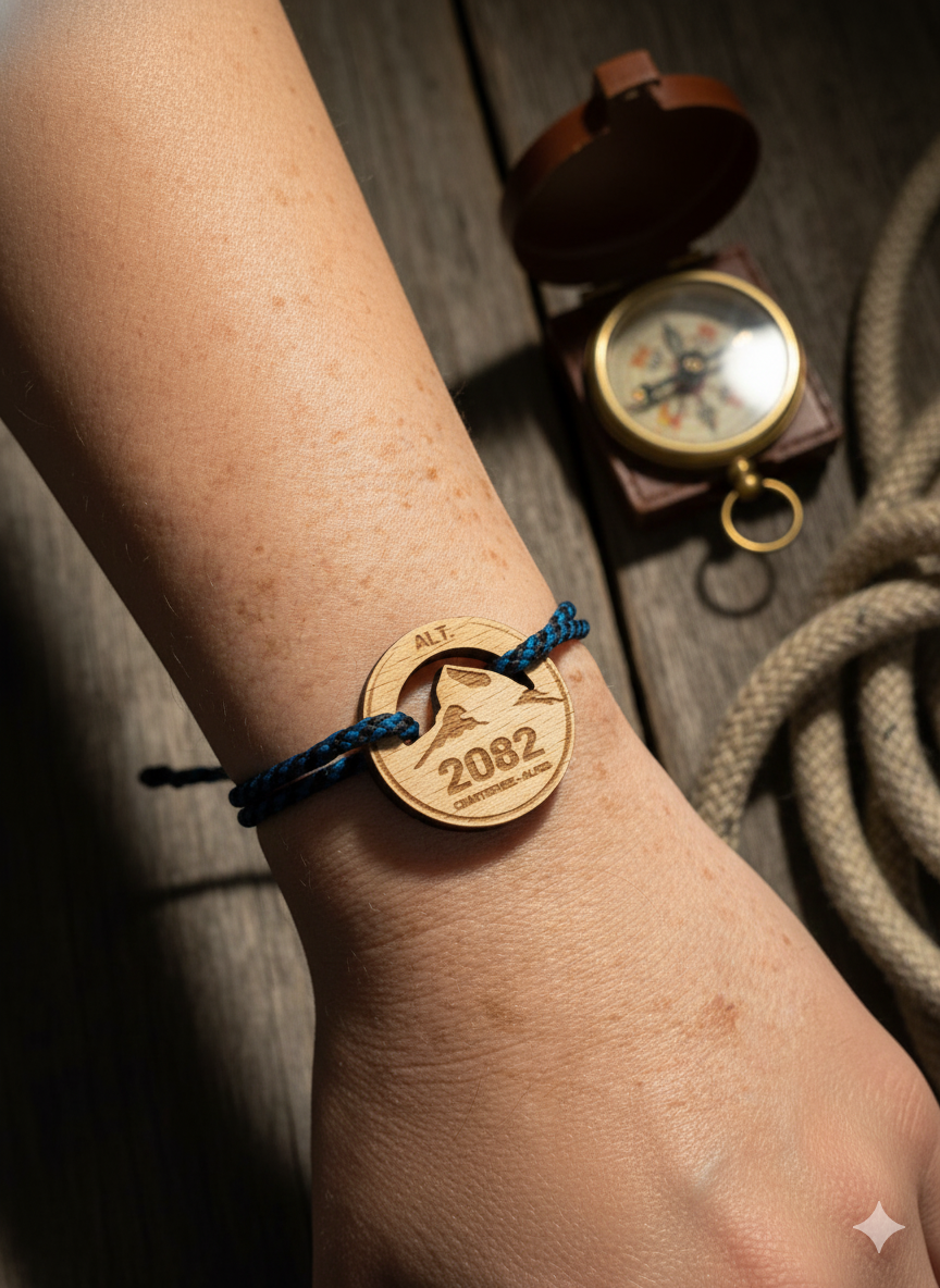 Affichez votre attachement au massif de Chartreuse avec le bracelet Alt 2082, une création locale unique. Gravé au laser, il représente le profil de Chamechaude, point culminant du massif de Chartreuse, pour un bijou discret et symbolique.