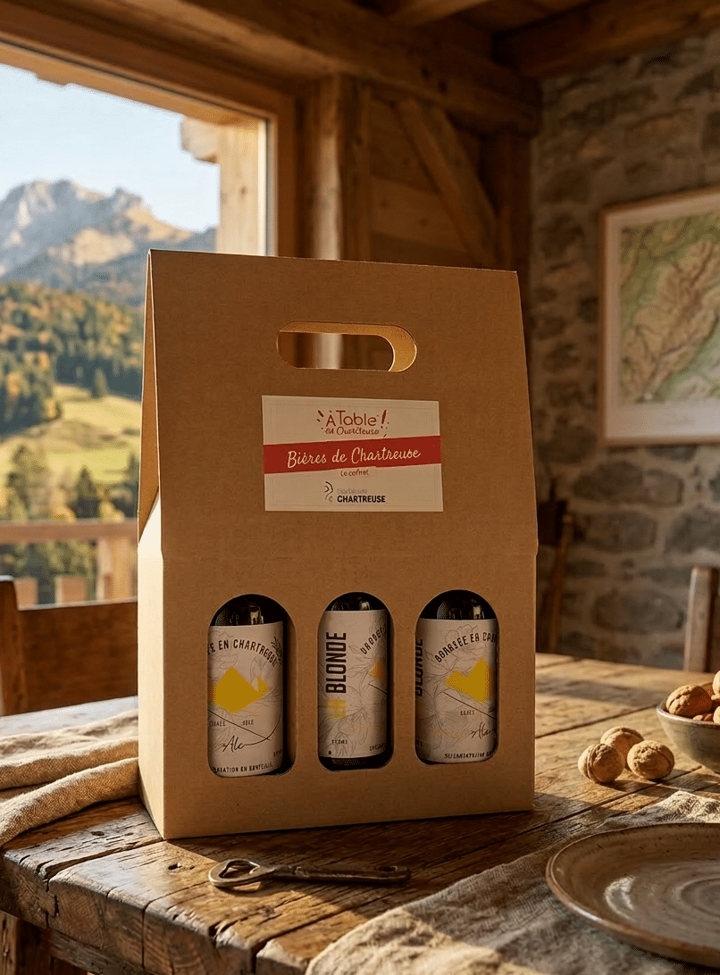 | Coffret de bières | Brasserie Coeur de Chartreuse, Brasserie Cuvée des Aulps, Brasserie La Caravane Brasse – Antre 2 bières, Coffret bières ambrée/triple/IPA, Coffret bières blanches, Coffret bières blondes, Coffret 2 Chalendes et 1 Surchauffe, Coffret 2 Surchauffe et 1 Chalendes |