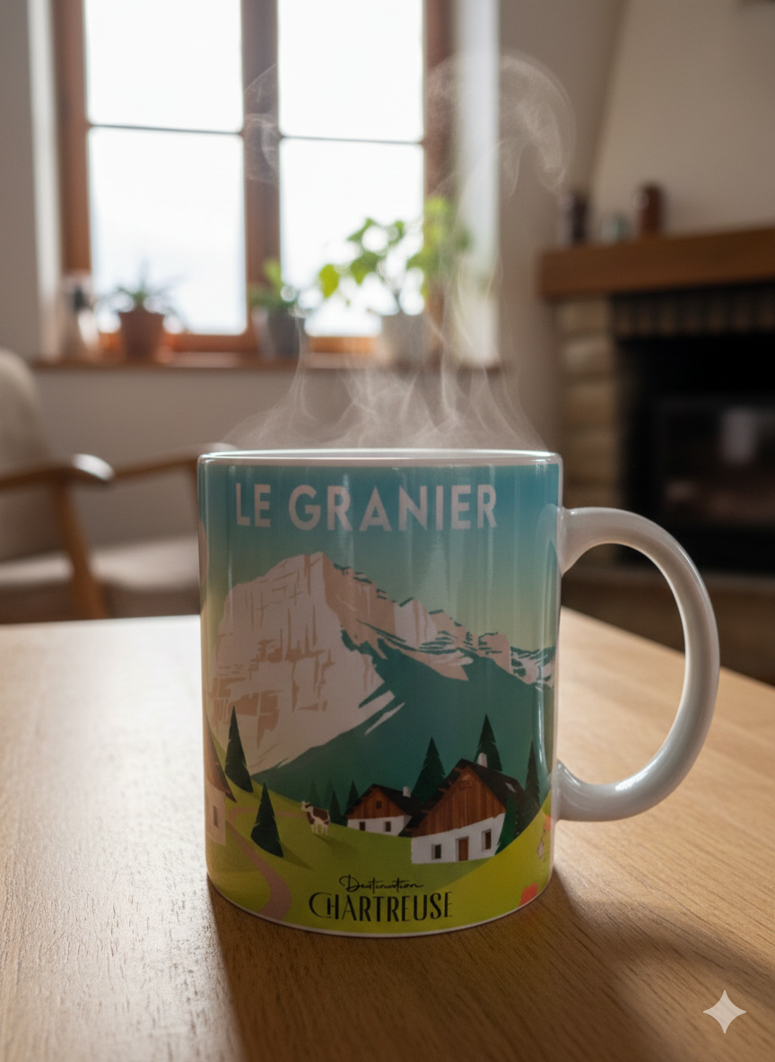 Ajoutez une note alpine à vos moments de détente avec cette tasse en céramique décorée d’un panorama du Mont Granier. L’illustration, imaginée par une artiste de Grenoble, met en lumière la silhouette imposante de ce sommet, symbole incontournable de la Chartreuse. Le décor, imprimé tout autour de la tasse, est conçu dans un atelier situé en Chartreuse. Parfaite pour accompagner vos pauses café ou thé tout en rendant hommage à ce paysage unique.