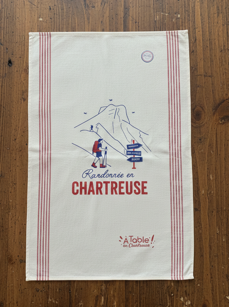 Apportez une touche de nature à votre cuisine avec ce torchon illustré d’un visuel inspiré de la randonnée en Chartreuse. Fabriqué en France et confectionné en 100 % coton, il allie qualité et authenticité. Son décor met à l’honneur les paysages emblématiques du massif de Chartreuse, idéal pour les amoureux de montagne et de savoir-faire français.